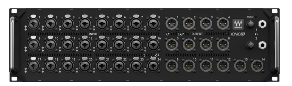 Waves Ionic 24 is a 24-in/18-out SoundGrid stagebox designed to elevate your live sound rig. Its 24 original-design Waves Signature Preamps yield high-headroom performance with snappy transient response and insanely low self-noise. What’s more, these preamps enable you to toggle — per input — between straight-wire transparency and harmonic-rich character. The Ionic 24 also gives you seamless integration with Waves’ eMotion LV1 software mixer. The Ionic 24 boasts stereo AES digital connectivity, along with two independent headphone outputs. Live sound pros searching for I/O expansion — not to mention a serious sonic upgrade — for their eMotion LV1-based mixing setup will find the Ionic 24 simply irresistible.