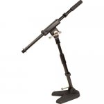 The micreophone stand is a low-profile mic stand that's designed for use in miking kick drums and guitar amps. Can be adjusted from 15.5 to 21" (39.4 to 53.3 cm) in height and is angle adjustable at its base.