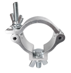 This O-clamp is designed specifically for use with most truss systems. It is made from high-strength aluminum alloy and features durable, yet lightweight construction. The O-clamp design allows for quick and easy mounting onto the truss, and it can be securely fastened in place using a bolt and wing nut. The clamp's wide surface area helps to distribute weight evenly, reducing the risk of damage to the truss or equipment while being hung.