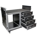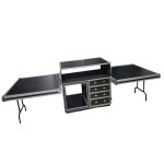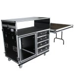 Dual-Table Case, Shockproof Modular Mixing Console Workstation with 2 Side Tables, 4 Drawers, 12U Rack Unit, and Casters
