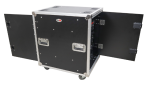With various improvements from previous models and other brands, our new slam door cases all come equipped with 4 shockproof mounts on each of both racks. There is also an extra 4" space from the rack to the door on both racks. That way you can freely mount larger sized mixers, or hang cables from the back without having to worry about closing the doors.