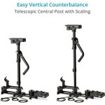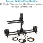 The combination of a 3-axis gimbal with ball bearings, stabilizer arm with dual-spring design, and padded vest with adjustable hook-and-loop straps make for an ultrasmooth, balanced camera rig for professional applications.